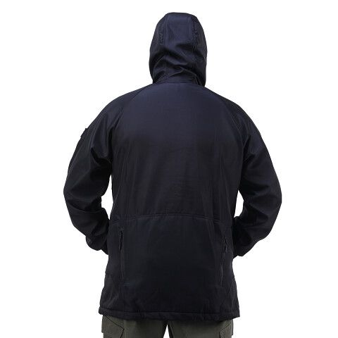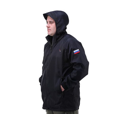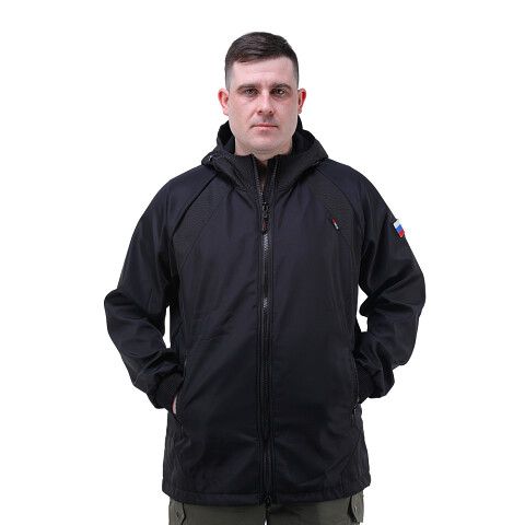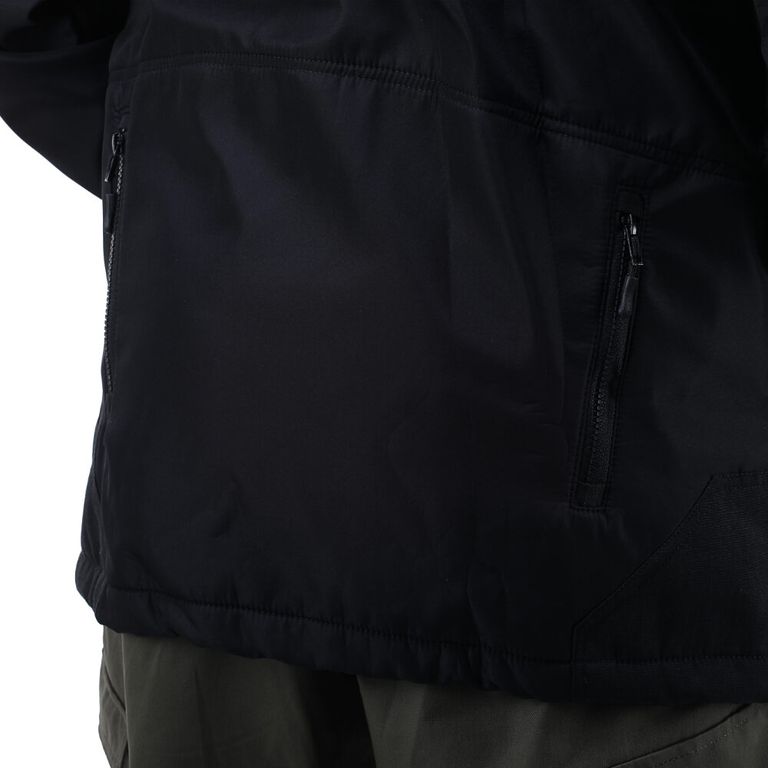 Куртка выполнена в стиле милитари. Ткань полофлис, обладает ветрозащитными и пылевлагозащитными функциями. На куртке два передних, два задних кармана на молнии, а также один внутренний карман. Модель данной курки укороченная на кулиске.