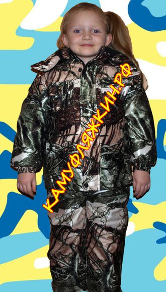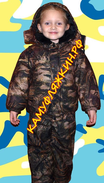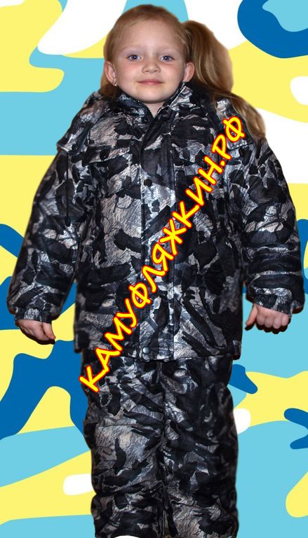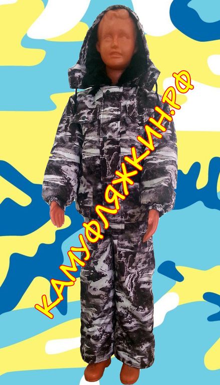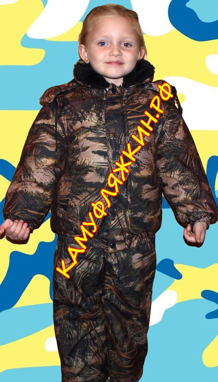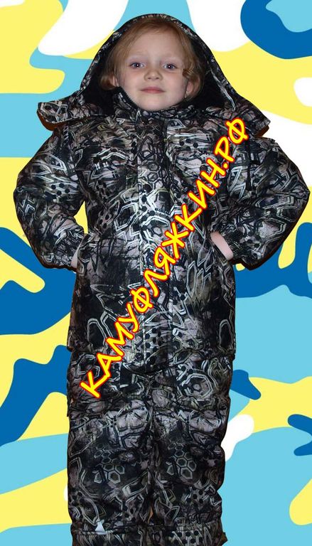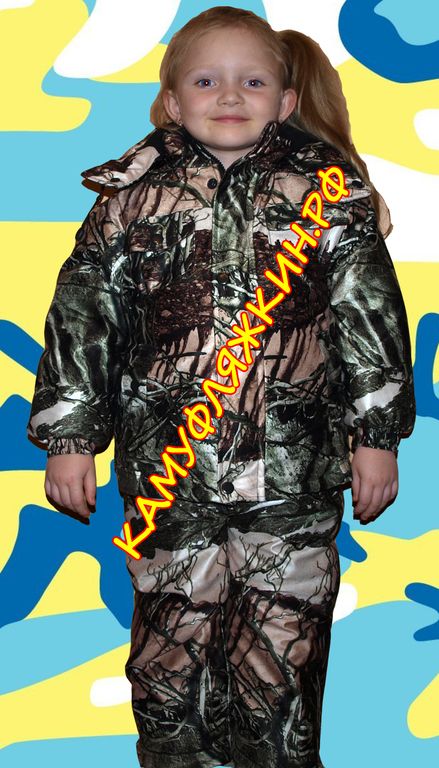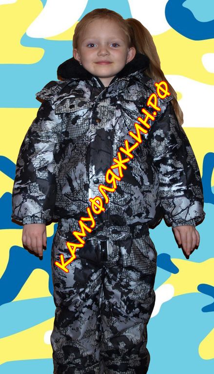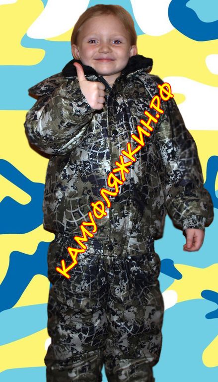 Отличный вариант для зимнего похода, совместной со взрослыми охоты или рыбалки. Поможет легко переносить холод, ветер, а также возможные влажные осадки. Надежно защищает тело, есть удобный капюшон на кнопках.