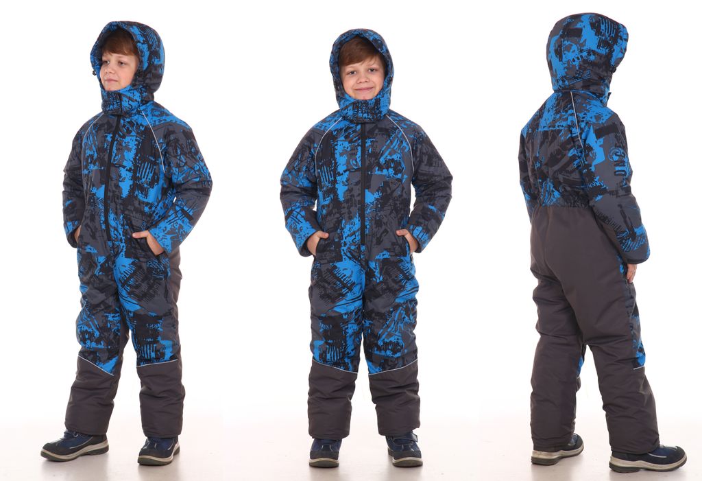 Комбинезон с застежкой на молнию. Имеется два боковых прорезных кармана на молнии, утепленные флисом. Съемный капюшон на липучках, регулируется резинкой с фиксаторами. Воротник - стойка, утеплен флисом. На куртке имеется огибающая замок молнии планка, для исключения контакта замка молнии с шеей и подбородком. Рукава имеют внутренний эластичный трикотажный манжет. Брючины комбинезона усилены наколенниками. Снизу комбинезон фиксируется резинкой.