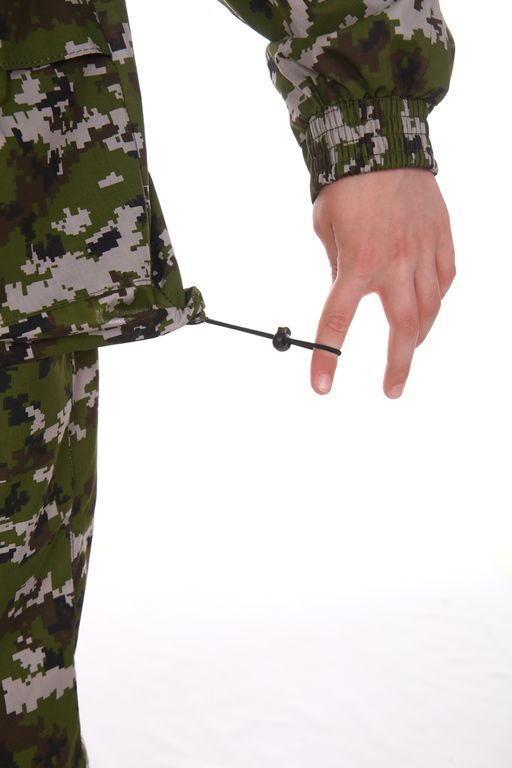 Куртка свободного кроя с застежкой на молнии и с ветрозащитной планкой на кнопках. Куртка имеет 4 кармана: 2 нагрудных прорезных и 2 нижних накладных с клапаном. Низ куртки и брюк регулируется утяжкой с фиксатором. На капюшоне имеется защитная сетка на лицо, которую можно отстегнуть и убрать в специальный карман. Манжеты на рукавах выполнены на резинке.