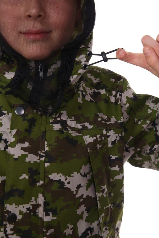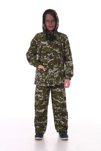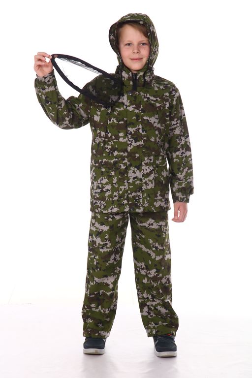 Детский летний костюм Антимоскитный (противоэнцефалитный) выполнен из ткани - 100% хлопок, камуфляжной пиксельной расцветки (КМФ цифра). Костюм состоит из куртки с капюшоном и брюк. Предназначен для походов в лес, для защиты от укусов насекомых.
