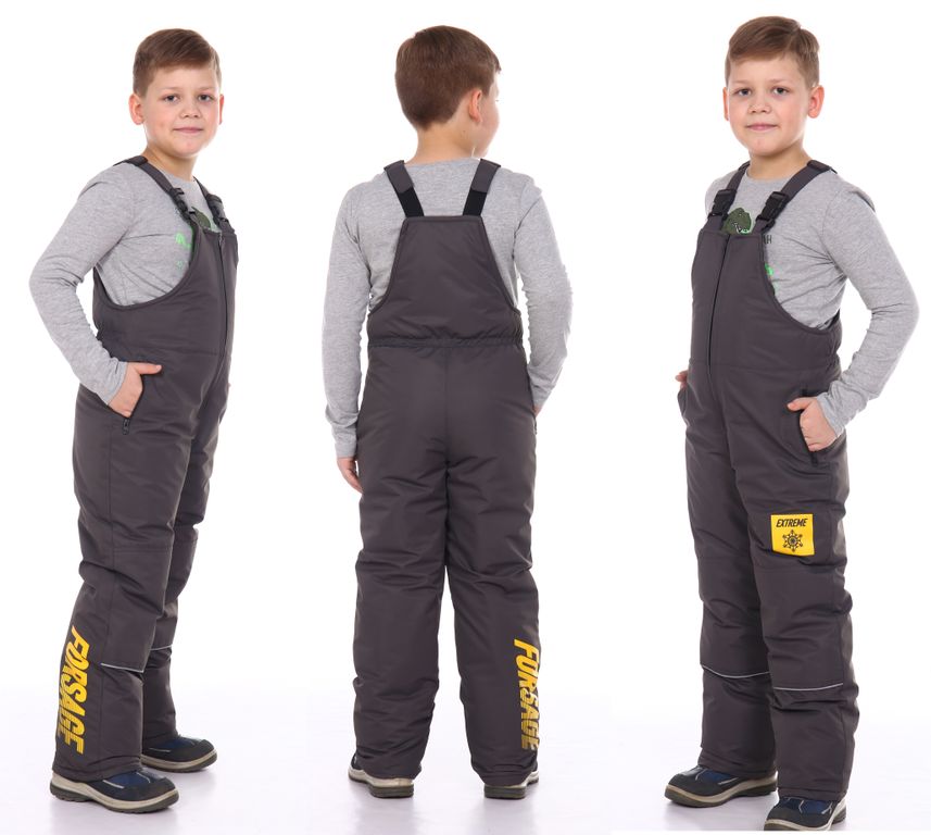 Полукомбинезон на молнии, регулируется по росту эластичными лямками с пластиковой фурнитурой. Есть два боковых кармана на молнии. Зона колена усиленная. По низу брючин есть снегозащитная манжета на эластичной резинке.