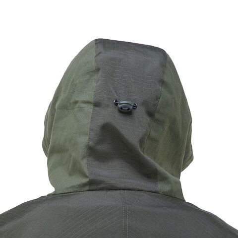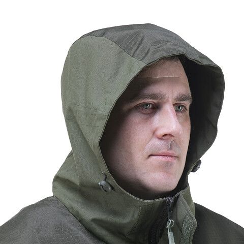 Куртка застегивается на двухзамковую тракторную молнию, клапан с липучкой. Капюшон имеет два вида регулировки (утяжки) шнуром с фиксаторами: сзади – регулируется объем капюшона и по бокам – регулируется по овалу лица. фиксатором. Брюки со семной подкладкой из флиса. Брюки застегиваются на канадскую пуговицу, имеют гульфик на молнии и идут в комплекте со съемными подтяжками.