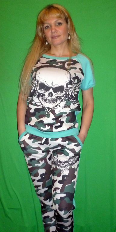 Удобный костюм в стиле милитари подойдет для самых разных спортивных занятий. В нем можно ходить в тренажерный зал, заниматься йогой или фитнесом прямо на улице, либо просто совершать ежедневные прогулки. Короткие рукава и особенности ткани не дадут перегреться в жаркий день.