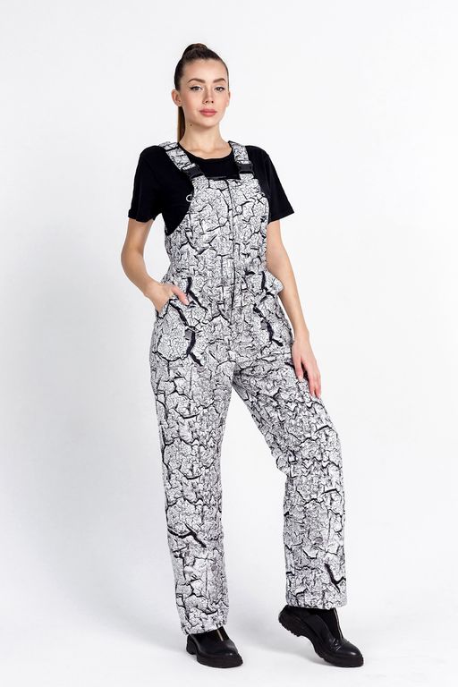Полукомбинезон на молнии с регулирующимися по росту лямками и двумя накладными карманами, утепленными флисом. Подкладка полукомбинезона - флис и таффета.