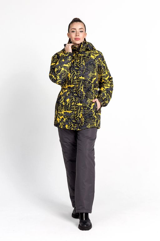 Куртка приталенного кроя с утяжками в талии и снизу, с застежкой на молнию, закрывается ветровлагозащитной планкой на кнопках. На куртке имеются три кармана: один внутренний на молнии и два нижних кармана, утепленных полибрушетом, на водонепроницаемой молнии. Съемный капюшон на молнии, регулируется резинкой с фиксаторами. Воротник - стойка, утеплен флисом. Манжеты на рукавах на резинке. Плотность утеплителя крутки 300 гр/ кв.м. Подкладка - флис.