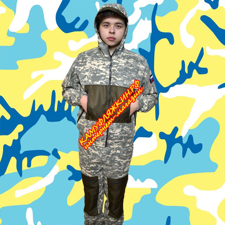 Камуфляжный костюм "Пилот" выполнен из твила спич-эффектом, который отлично пропускает воздух. Это свойство материала позволяет вашей коже дышать, что особенно важно летом, а высокая плотность дает пыленепроницаемость одежды, высокую износостойкость и долгий срок службы. А также весьма приятный нюанс – данный материал имеет бархатистую приятную отделку и не требует особо спец. ухода. Конструкция воротника (мужского летнего камуфляжного костюма) такая, что стойка плавно переходит в капюшон. Центральная застежка куртки на молнии. Шесть карманов обработаны на застежку- молнию. На поясе брюк шлевки под широкий ремень. Низ брюк на резинке. Летний камуфляжный костюм "Пилот" прекрасно подойдет для рыбалки, охоты, туризма и активного отдыха на природе.