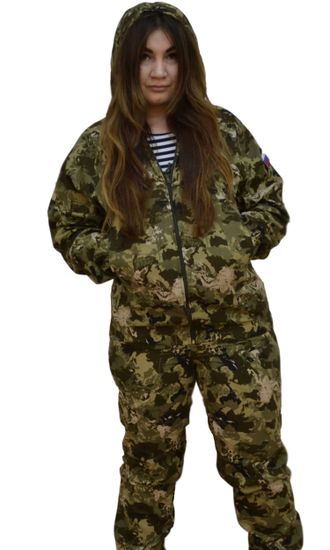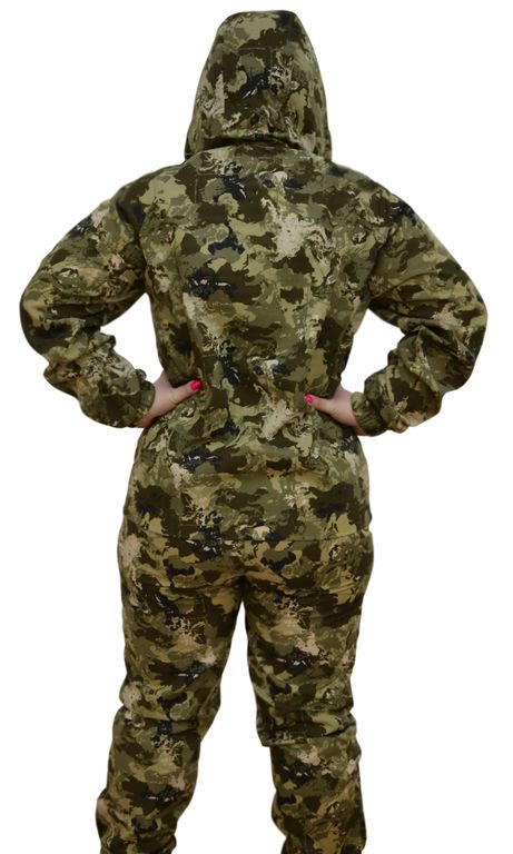 Костюм выполнен из сорочечной ткани премиум класса, которая обеспечивает повышенную воздухо- и паропроницаемость, что позволяет находиться на палящем солнце, кроме того она не шуршит при сминании, имеет высокие прочностные показатели, приятна к телу.