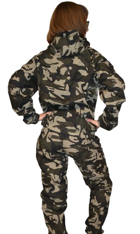 Костюм выполнен из сорочечной ткани премиум класса, которая обеспечивает повышенную воздухо- и паропроницаемость, что позволяет находиться на палящем солнце, кроме того она не шуршит при сминании, имеет высокие прочностные показатели, приятна к телу.