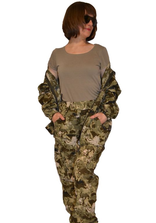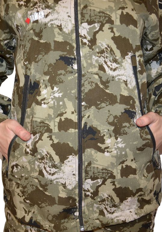 Костюм летний женский «Тайган» в камуфляжной лесной расцветке, выполнен из сорочечной ткани, которая имеет приятную на ощупь фактуру; гипоаллергенные качества; хорошую воздухопроницаемость; комфорт при контакте с телом; способность к поглощению влаги; отсутствие эффекта статического электричества.