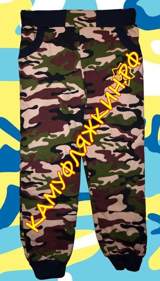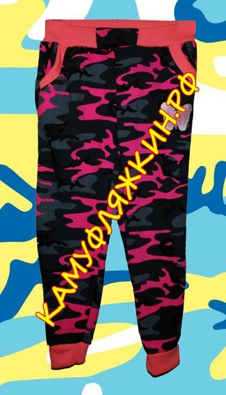 Яркие камуфлированные трикотажные штаны - отличный образец предмета одежды, который можно использовать не только для ношения на улице в жаркую погоду, но и использовать даже дома. Мягкие, комфортные, свободные - что еще нужно?