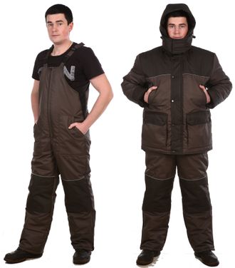 Полукомбинезон с двух замковой молнией, усиленный наколенниками. Также имеются два накладных кармана.