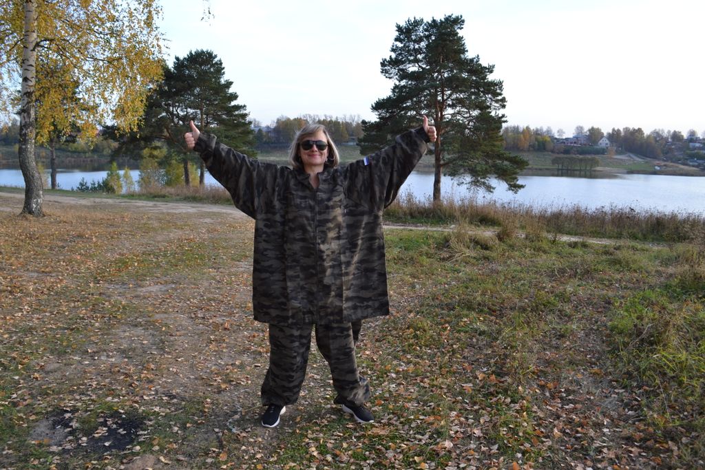 -64-66: ширина куртки - 75см., длина куртки - 75см., длина рукава от подмышки - 60 см., штаны общая длина - 109 см., шаговая длина - 80, шинина пояс - 66 см.