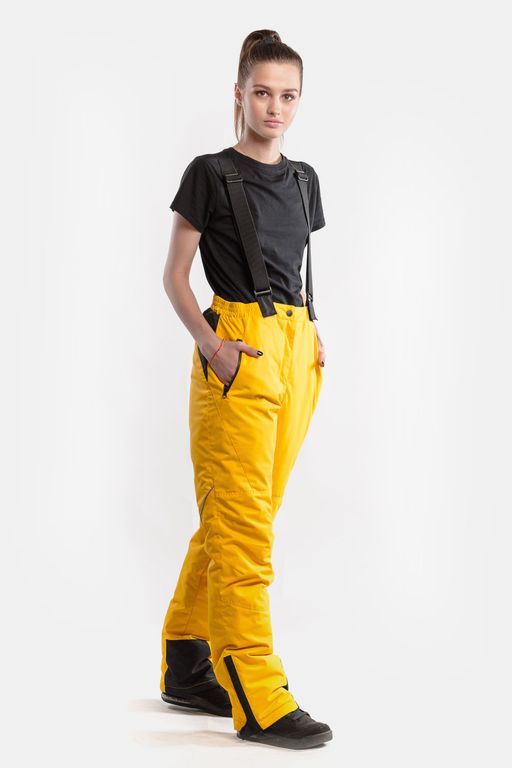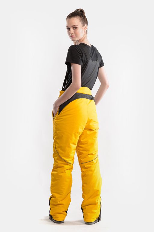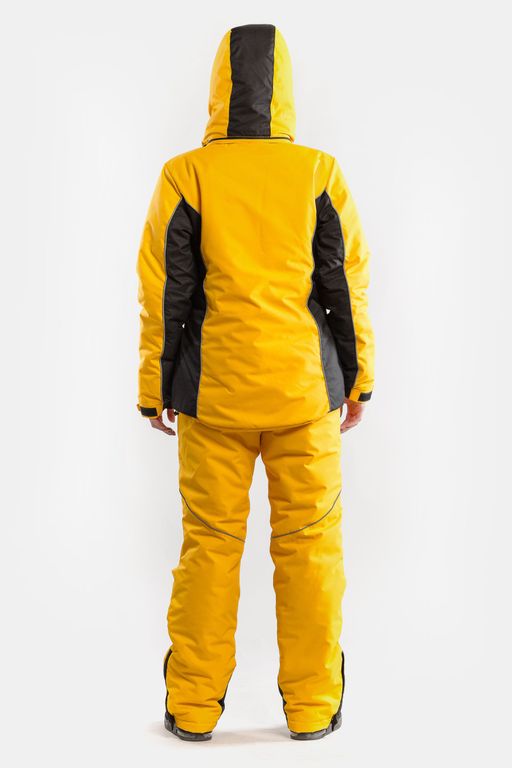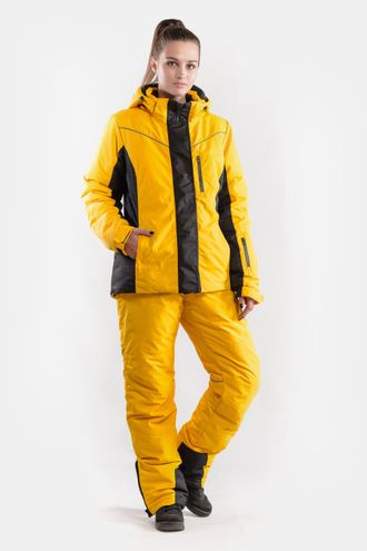 Костюм зимний женский Голд выполнен из мембранной ткани (водостойкость ткани 10000, паропроницаемость 10000) комбинированного цвета – желтый и черный, утепленный Слайтекс®. Костюм рассчитан на эксплуатацию до -30 гр. С.
