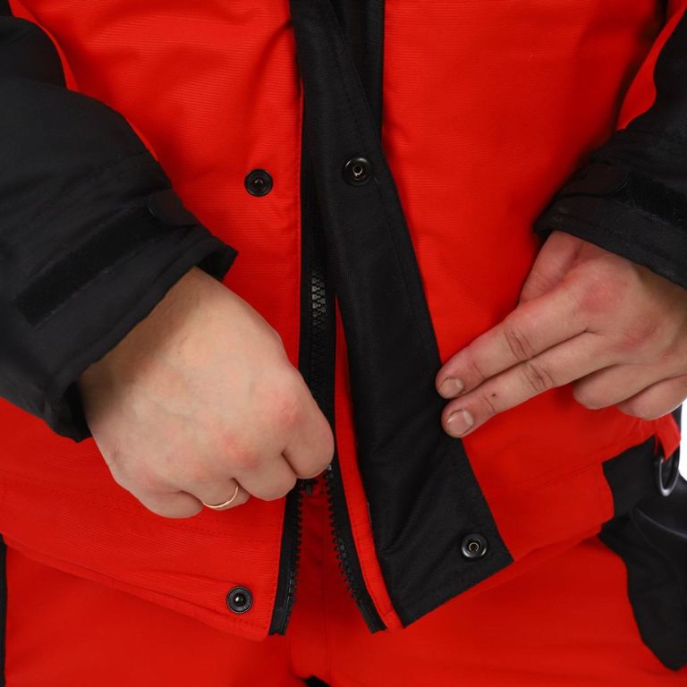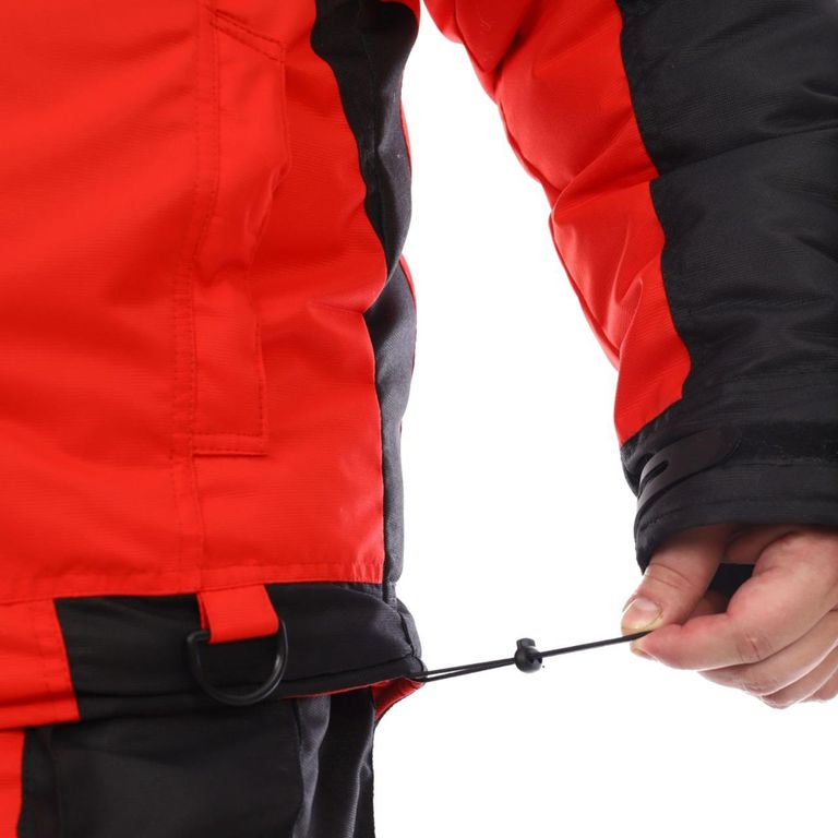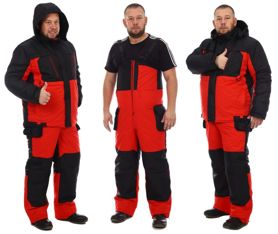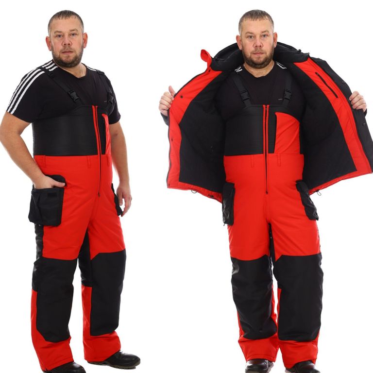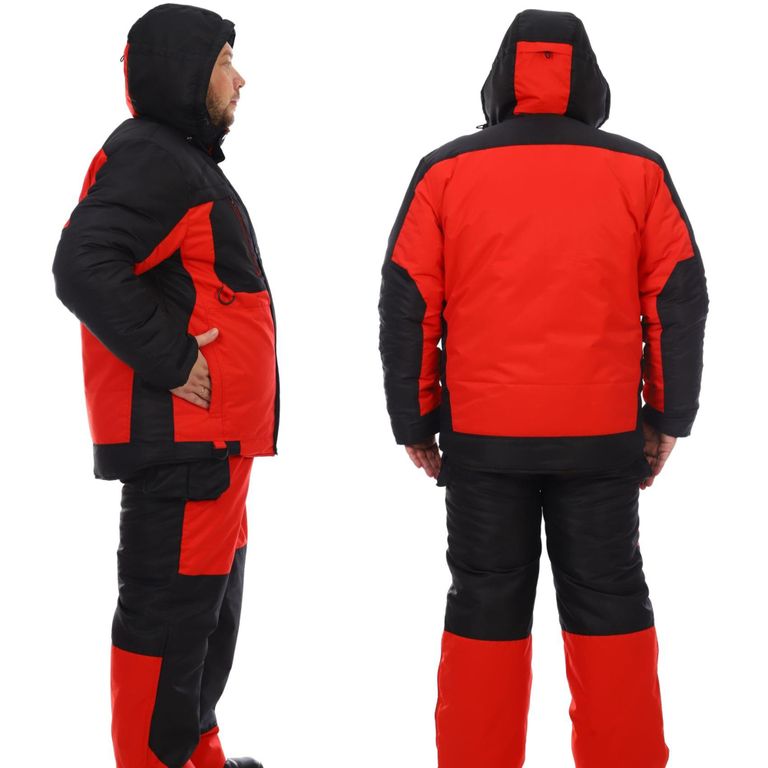 Зимний рыбацкий костюм Грант красно-черной расцветки выполнен из мембранной ткани (водостойкость 10000, паропроницаемость 10000). Утеплитель - Сиберия®. Куртка: утеплитель плотностью 350 гр./кв.м., полкомбинезон: утеплитель плотностью 200 гр./кв.м. Подкладка из флиса. Костюм рассчитан до -35 гр. Ц. и может применяться как рыболовный.