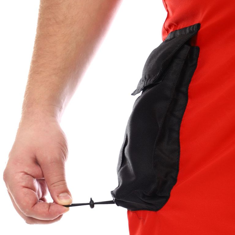 Полукомбинезон с двух замковой молнией, наколенники усиленные. На полукомбинезоне имеются три кармана. Низ полукомбинезона с уширением на молнии.